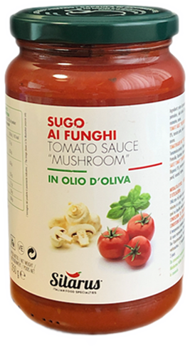 Felhasználási javaslat: felmelegített serpenyőben pár percig melegítsük. Összetevők: paradicsom pép 77%, champion gomba (Agaricus Bisporus)8%, paradicsom koncentrátum, olívaolaj 1%, só, fehérbor, fokhagyma 0.2%, cukor, bazsalikom 0,2%, petrezselyem, rozmaring, aromák.