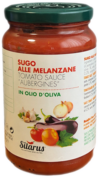 Paradicsompép 76%, paradicsom koncentrátum, padlizsán 8%, vöröshagyma 3%, olívaolaj, só, fokhagyma 0,2%, cukor, petrezselyem 0,2%, oregánó, aroma.